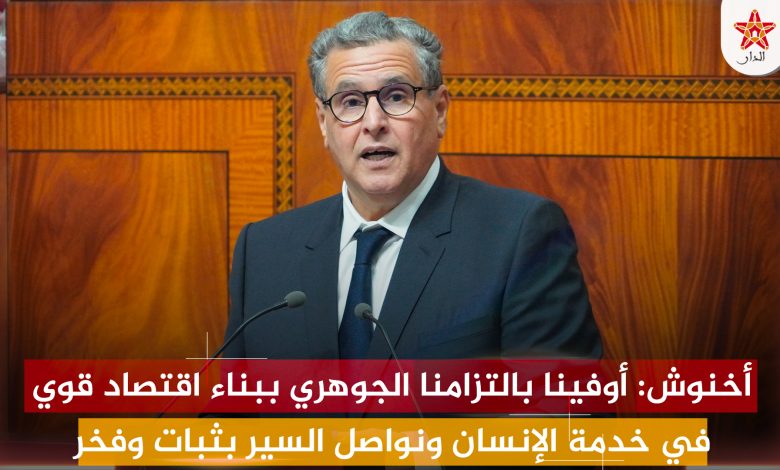 خلال تقديم حصيلة حكومته.. أخنوش: أوفينا بالتزامنا الجوهري ببناء اقتصاد قوي في خدمة الإنسان ونواصل السير بثبات وفخر نحو المستقبل